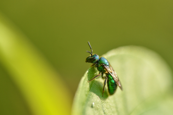 This metallic bee was orienting itself so that it could maximize the amount of sun it could absorb on this relatively cool fall day.