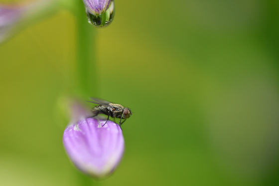 After a small amount of rain I noticed this fly situated under a droplet of water. Although the fly took off shortly after I took the shot, it did look a little precarious for the fly for the short time it was there.