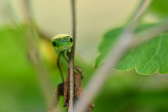 As I was photographing this Smooth Green Snake, it turned towards my camera allowing me to capture this shot.