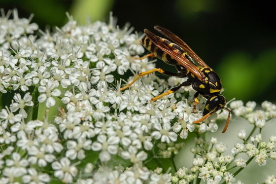 Every year, these white flowers bloom at a park near my house, and bugs flock to them before the lawn mower destroys the crop. This photo was taken on a particularly hot day during this short span of increased bug activity in my area.