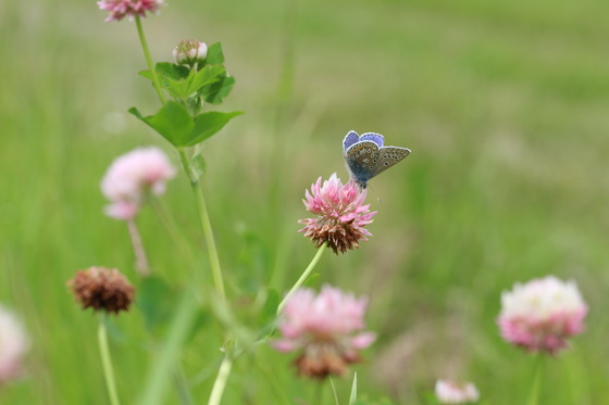 A very small butterfly landed for a split second on the tiny pink flowers.