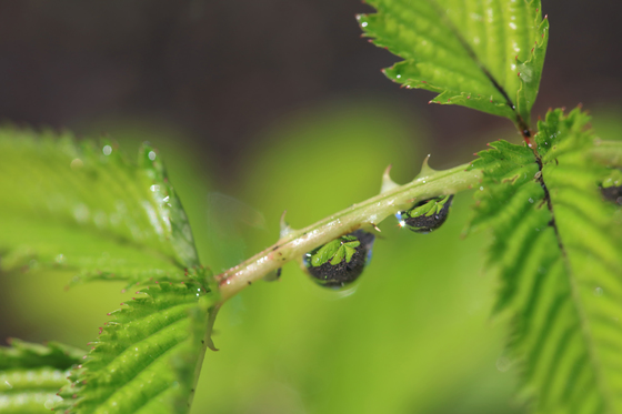 Macrophotography of leaves and raindrops.