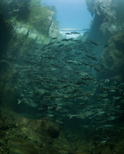 Pink Salmon on their incredible journey up river to spawn.