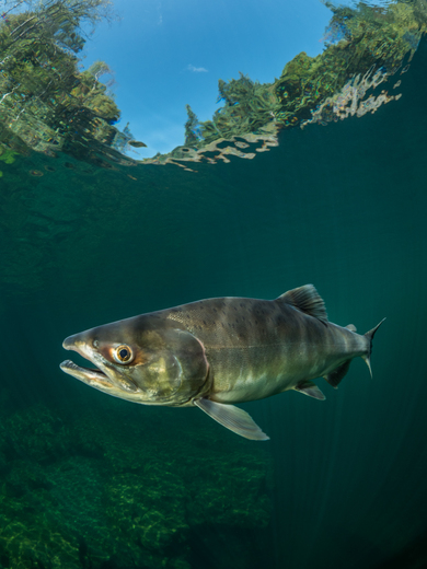 A pink salmon on it's journey up river to spawn