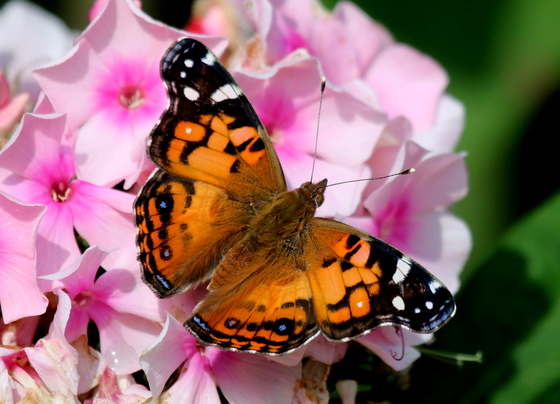 An American Lady Butterfly sits on top of my phlox flower.