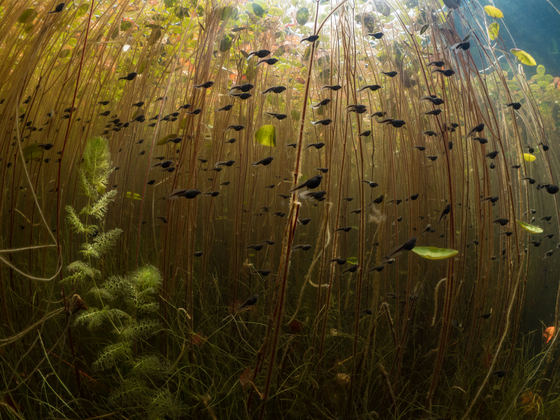Western Toad Tadpoles on their morning migration into the shallows to feed on micro algae