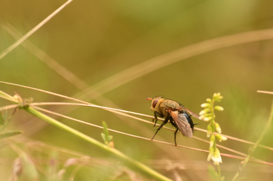 As I was trying to photograph this fly, it landed on a couple of dead strands of grass and looked like it was walking a tightrope.