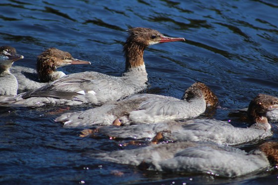 This group of young Merganser Ducks were feeding by the beach at Rock Lake, Algonquin