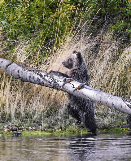 This young Grizzly Cub seems to be keeping watch while his mother looks for spawning salmon.