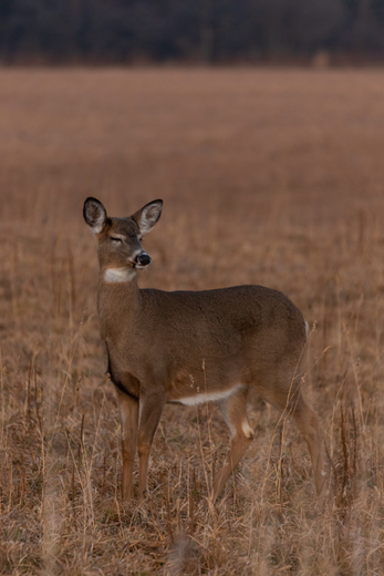 White tailed doe was out grazing in a field and as she lifted her head and blinked I snapped the photo. She almost looks content.