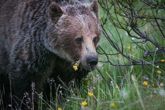Grizzly enjoying a roadside treat