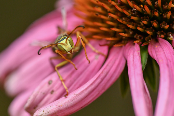 This hornet was photographed while it was resting on an Echinacea flower.
