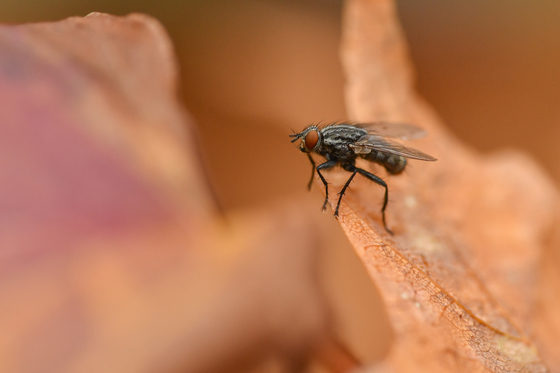 A Tachinid fly rests on a dead leaf in order to look over its domain.