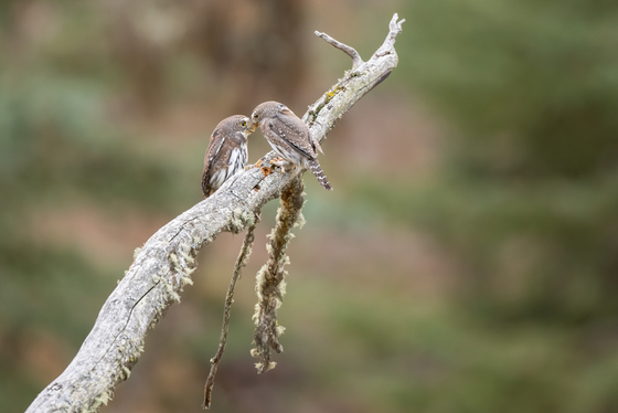 These two Northern Pygmy Owls spend a special moment together.