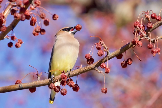 Bohemian Waxwing enjoying Berries