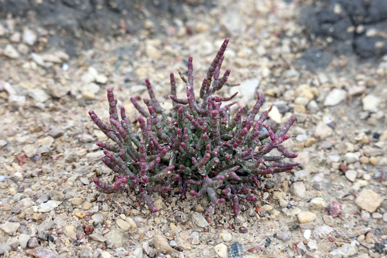 The Red Glasswort (Salicornia rubra) is a odd plant that thrives in salty environments and can be found on the Salt Plains of Wood Buffalo National Park, Alberta, Canada.