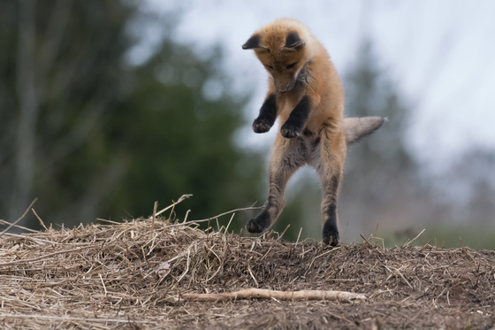 fox kit jumping