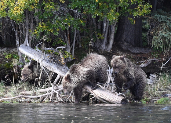 Interesting that one of the grizzly triplets does not follow the other two.