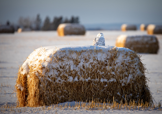 It's always a treat each year when the Snowy Owls venture down from the north for the winter. I went searching for them along some of the nearby country roads and was delighted to find this beautiful Snowy perched on top of a snow covered hay bale.