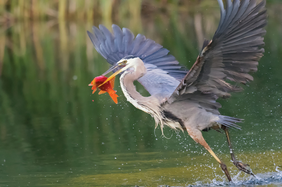 I took this picture in July, 2019 in Miliken Park, Toroto, while a blue heron was catching a meal