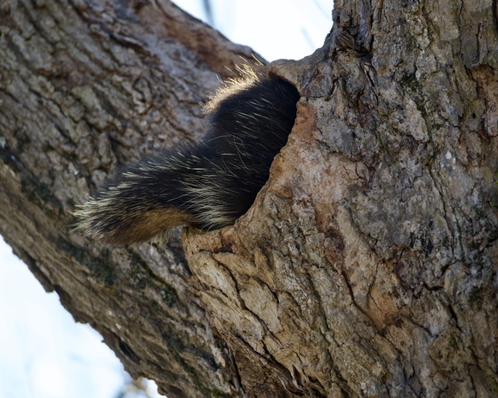 Porcupine snuggled half way into his winter den