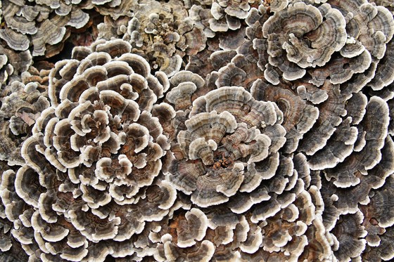 While walking in a trail, I saw this fantastic large Turkey Tail Mushroom growing on a tree stump. I am always amazed at all the nature's work of art we can see while walking in the woods, trails by the river and the wonderful design in frost and ice. Such a beautiful world.