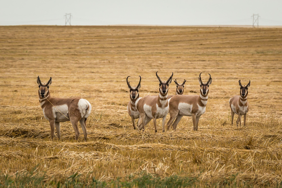 I was driving around the outskirts of Assiniboia, SK when I came upon this group of male Pronghorn grazing in a field. I stopped to setup for a photo and they all looked up at me in unison.
