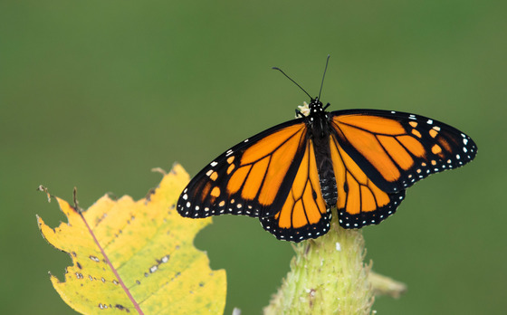 This newly hatched monarch dries out on a milkweed plant before taking flight to Mexico.