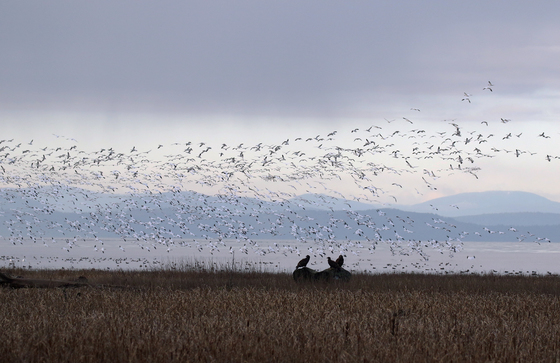 The Bald Eagles perched on the log are watching and waiting for the perfect opportunity to catch their next meal.