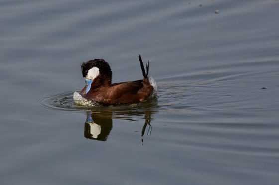Ruddy Duck male showing off to the females with his bubble making antics, June 1st, 2019 at the Frank Lake Conservation area near High River, Alberta.