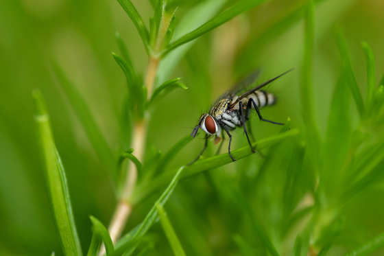 I noticed this fly deep inside a small bush, however, it stood out against the lush green of the plant.