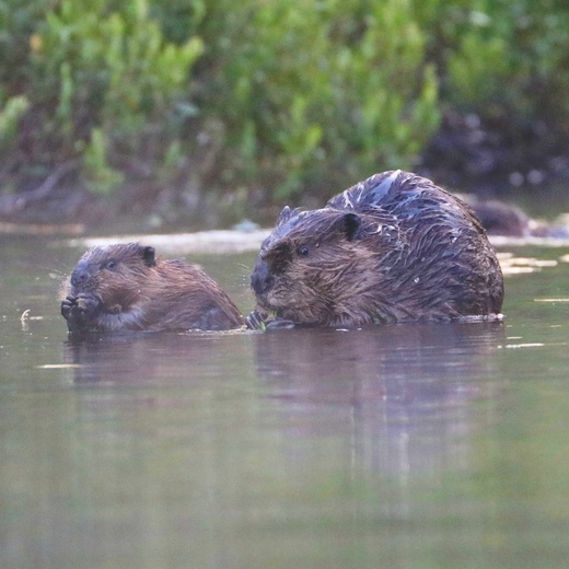 This young beaver was learning the ropes from its parent.