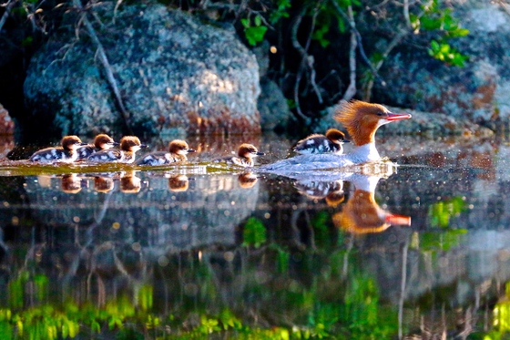 This mom and her baby mergansers were enjoying an early morning swim.