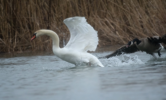 This picture I took in May, 2019 in Huber Park, Toronto, while goose was chasing swan out from its nest.