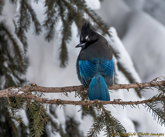 A Stellar Jay really fluffed up to stay warm at -35.