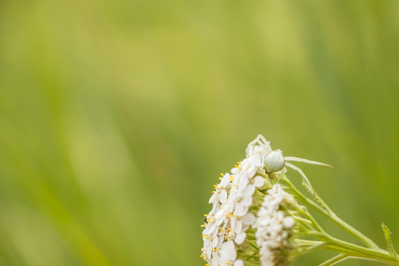 This crab spider crawling around on yarrow flowers with a clean background was a great find.