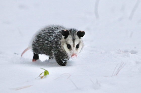 This young Opossum was digging in the snow for something to eat. I like the way it paused to take a look at me.