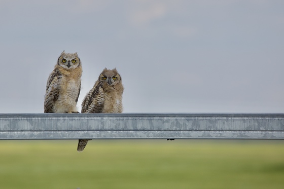 These great horned owlet siblings were quite fascinated to watch me work on July 9th, 2019 west of Welling, Alberta.