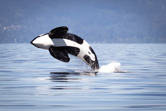 This photo was taken in the Strait of Georgia in May 2019. It is always difficult to see the underside of a wild orca. I was very lucky to see the beautiful belly of this male Bigg's orca T123A Stanley. The sea condition was perfect too!