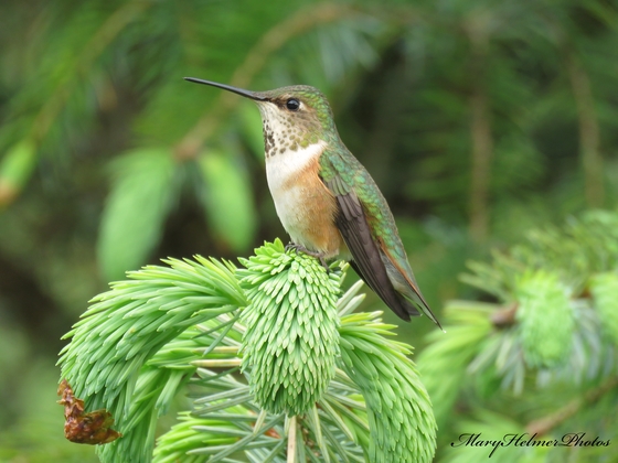 Humming Bird on the spruce tips