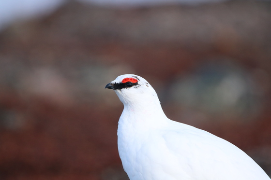 A male Rock Ptarmigan sits surveying his territory.