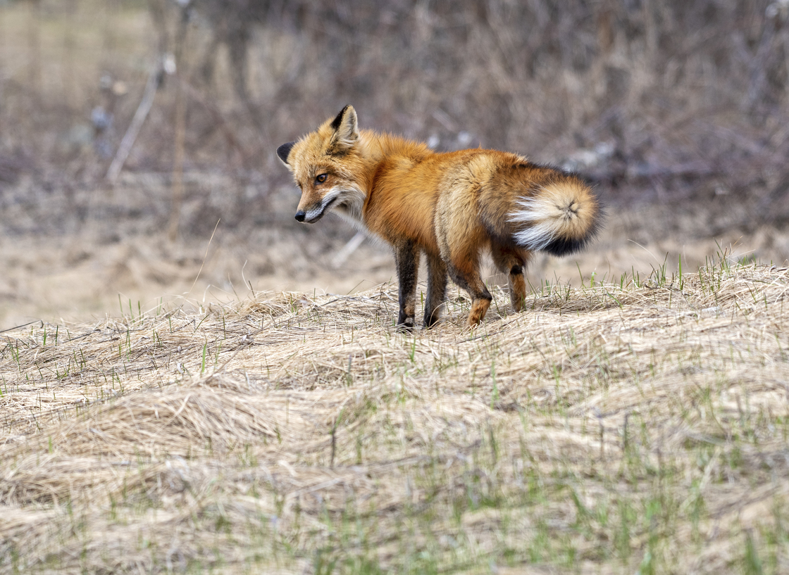 A Red Fox was working hard to catch his prey, which he in the end did.