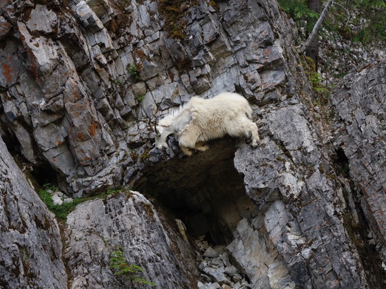 This male Mountain Goat jumps from one rock to the other with no fear.