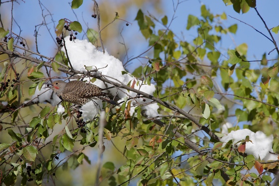 This northern flicker was enjoying some berries the day after a snow fall in Alexander Wilderness Park, Lethbridge, October 1st, 2019.