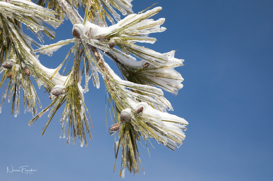 walking my trails I was drawn to a clump of time trees. The icy branches to lovely against the blue sky .