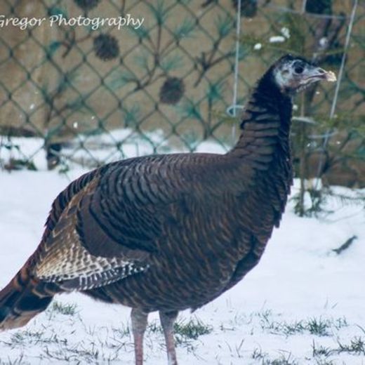 Captured this wild turkey in my back yard. He flew over the fence from the ravine and started pecking for seeds that had dropped from my bird feeder. The photo was taken in London, Ontario Canada