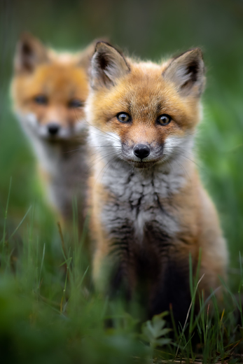 Red Fox Kit with his sibling behind him in Nova Scotia.