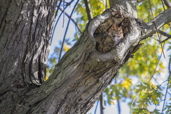 Finding a Eastern Screech Owl can be tricky! They are small owls that sleep during the day and hunt at night. But if you can find their home then they can be seen sleeping in the sun. This little guy is the Red Morph, there is also a Grey Morph too. I love owls!