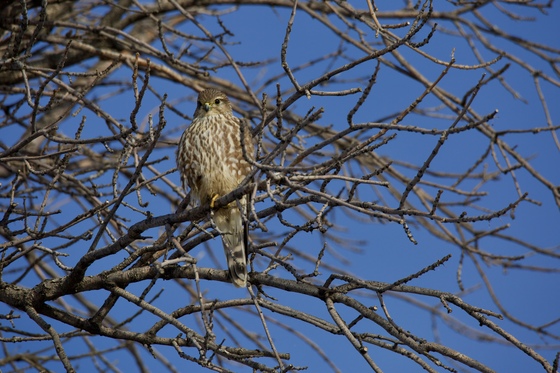 Driving in Lethbridge, Alberta and I spotted this merlin falcon in the trees on November 7th, 2019. I was pleased that he did not fly away and I was able to take some photos.