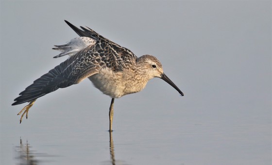 This Stilt Sandpiper had just finished preening when it did that most beautiful long stretch just like a perfect camel position in figure skating.